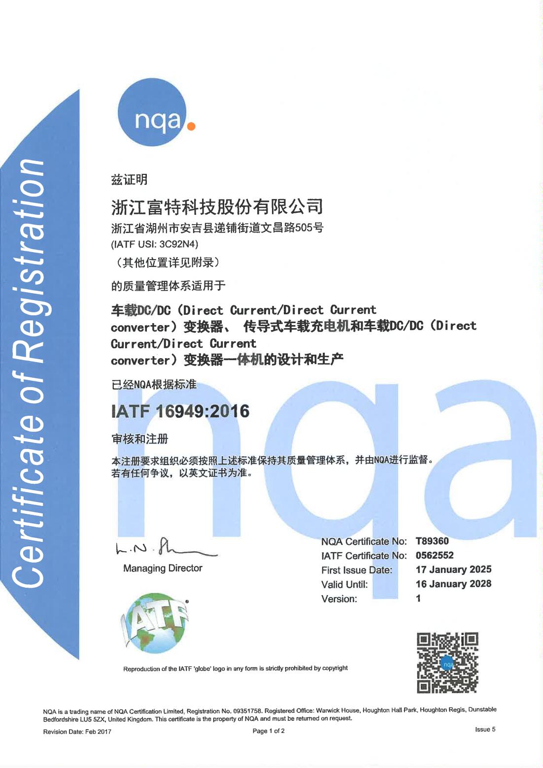 浙江富特科技股份有限公司,成立于2011年8月,生產(chǎn)基地位于湖州市安吉縣,研發(fā)中心位于杭州市西湖區(qū)、西安市高新區(qū),是一家專注于新能源汽車核心零部件的國家級高新技術(shù)企業(yè),是國內(nèi)新能源汽車車載充電機(jī)及車載 DC/DC 轉(zhuǎn)換器的主要供應(yīng)商。