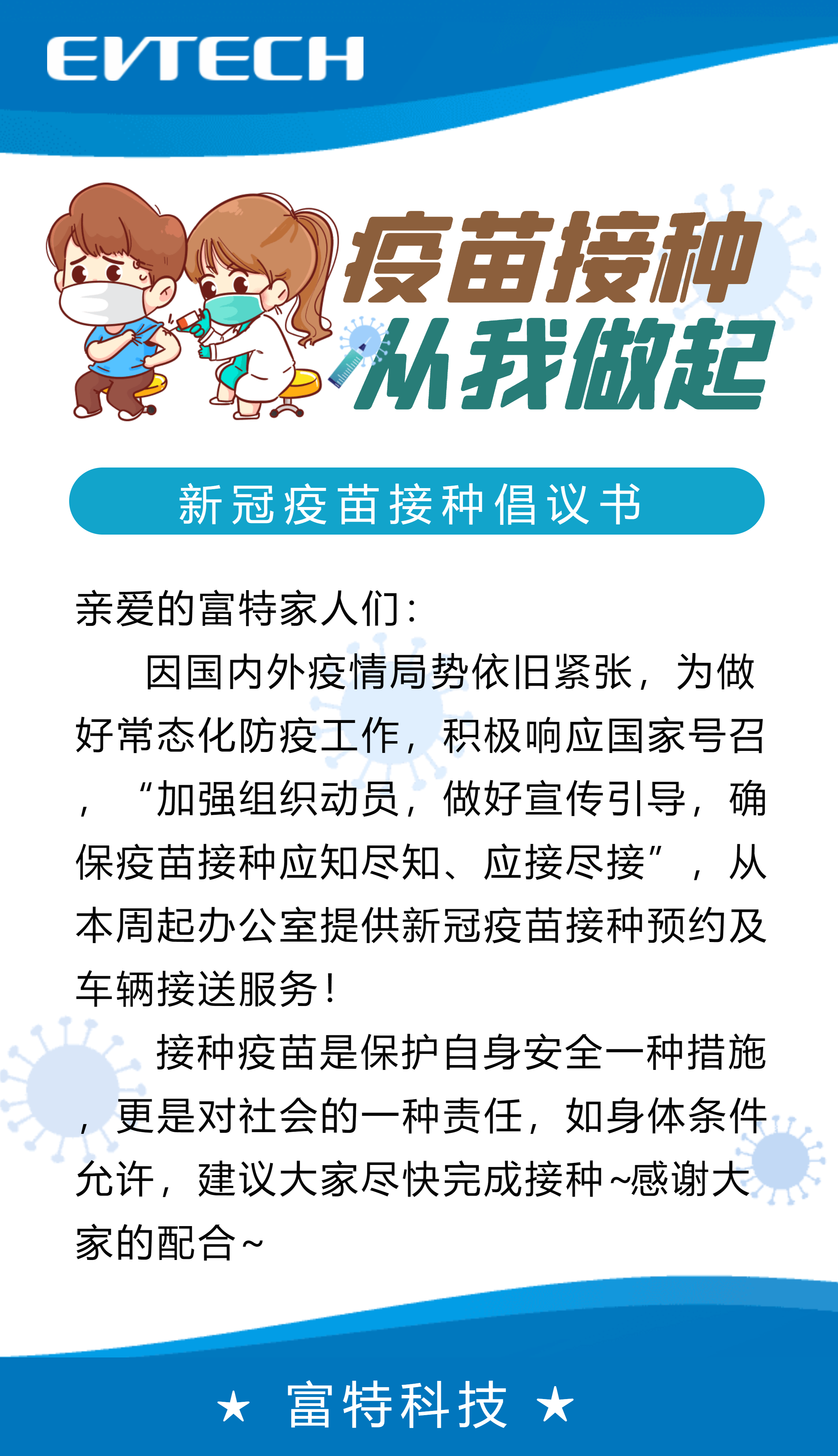 疫苗的接種預約及接送服務,通過各部門內(nèi)勤伙伴統(tǒng)一提報給辦公室-徐雯即可,她將會大家做好相關事宜的安排!