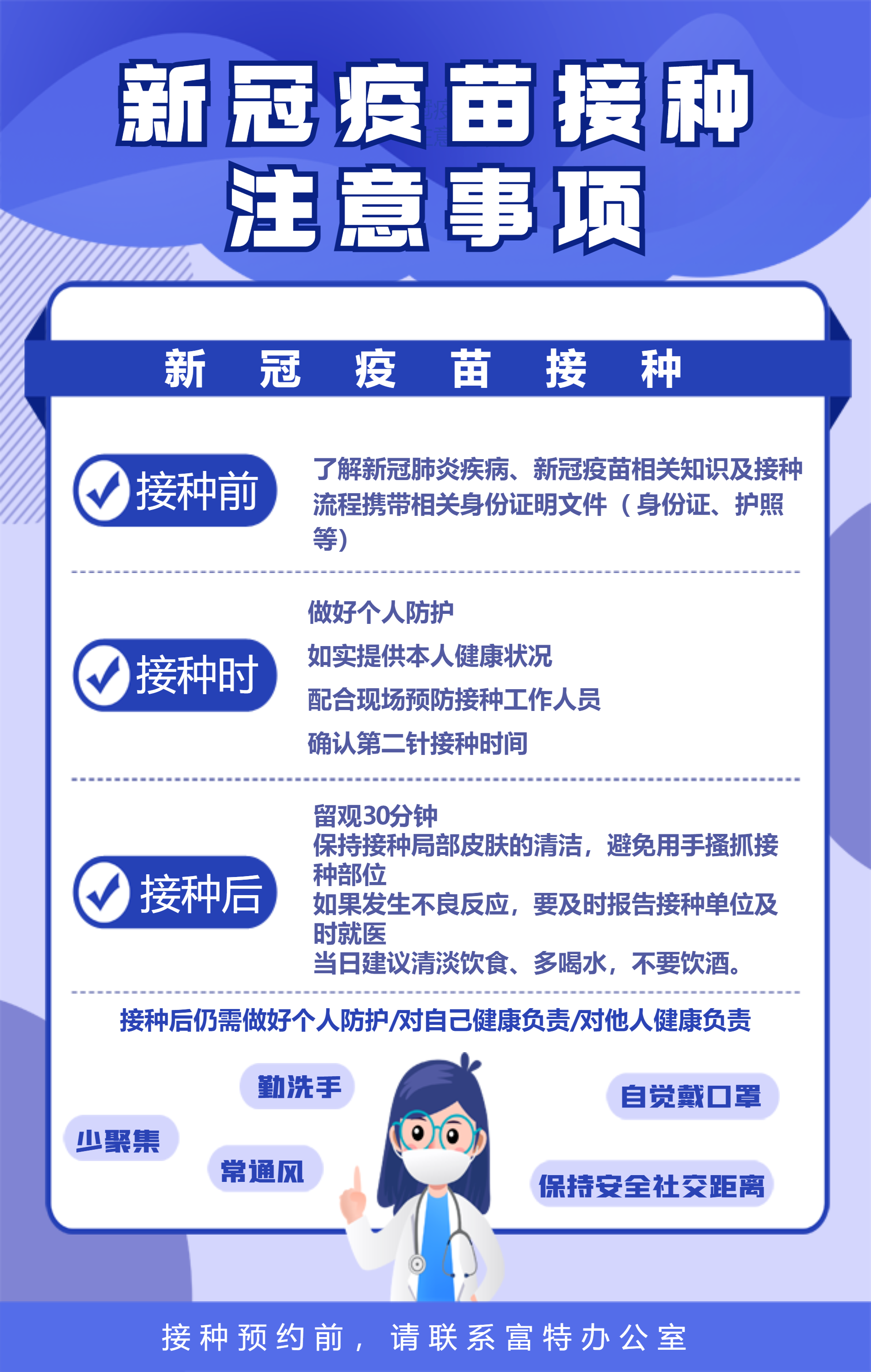 疫苗的接種預約及接送服務,通過各部門內(nèi)勤伙伴統(tǒng)一提報給辦公室-徐雯即可,她將會大家做好相關事宜的安排!