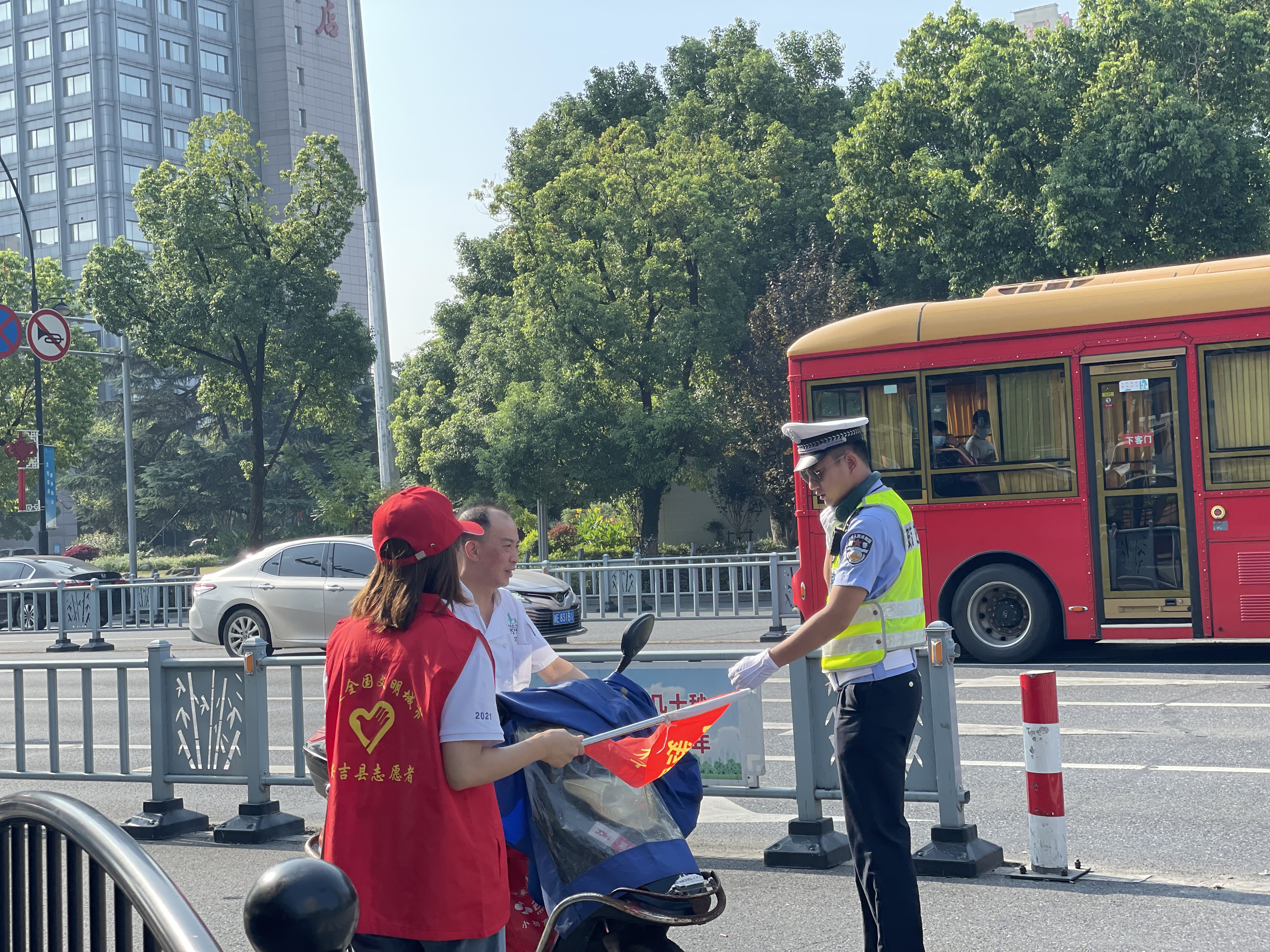 上午的安吉,天氣炎熱、陽光刺眼,志愿者們卻站的筆直、面帶微笑。他們說紅色的志愿馬甲穿在身上的時候,就代表著身上肩負(fù)著保衛(wèi)城市的使命感與作為富特人的社會責(zé)任感。
